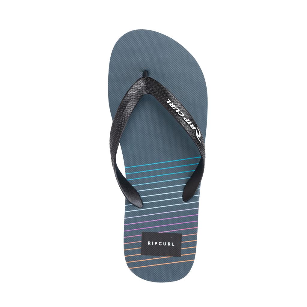 Chanclas de dedo Rip Curl de color azul marino con dibujo de líneas y estampado de la marca en la parte posterior.